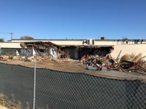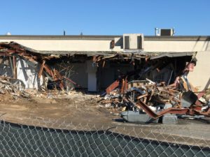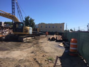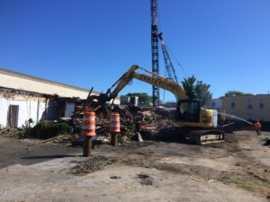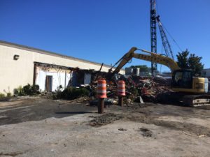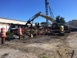 Demolition of the current office building at 195 East Merrick Road, the future site of the New Moxey Rigby Apartment Complex, officially began as the equipment and machinery rolled through.