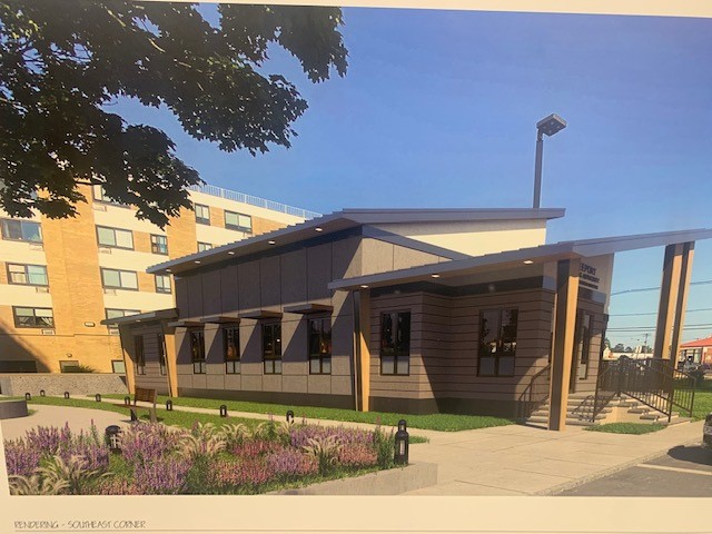 This new office building will be located adjacent to Reverend Mitchell Mallette Senior Apartments at 100 North Main Street. The office will sit where the courtyard is currently. Only part of the courtyard will be utilized for the office; the remaining portion will receive a facelift of sorts, with improved seating and tables for the tenants to enjoy time outside.